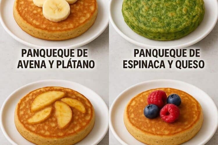 ¿Buscas una forma deliciosa y nutritiva de empezar el día? Los panqueques saludables son una excelente opción para un desayuno o merienda que te llene de energía sin culpas. En este artículo te enseño cómo preparar cuatro recetas fáciles, rápidas y llenas de sabor: panqueque de avena y plátano, panqueque de cacao y avena, panqueque de manzana y canela, y panqueque de yogur con frutos rojos. Todas son opciones nutritivas que puedes disfrutar en familia. Panqueque de avena y plátano Este clásico panqueque es ideal para aprovechar plátanos maduros. Es rico en fibra y sin azúcar añadida. Ingredientes 1 plátano maduro 2 huevos 1 taza de avena en hojuelas 1/2 cucharadita de polvo de hornear 1/2 cucharadita de esencia de vainilla 1 pizca de sal Opcional: un chorrito de leche para ajustar la textura Preparación Tritura el plátano en un bol hasta formar un puré. Agrega los huevos, la avena, el polvo de hornear, la vainilla y la sal. Mezcla bien hasta obtener una masa homogénea (puedes usar licuadora para una textura más suave). Calienta una sartén antiadherente a fuego medio y vierte porciones de la mezcla. Cocina 2-3 minutos por lado hasta dorar. Sirve con rodajas de plátano encima. Panqueque de cacao y avena Ideal para los amantes del chocolate, este panqueque saludable combina sabor y energía. Ingredientes 1 taza de avena molida (harina de avena) 1 huevo 1/2 taza de leche (puede ser vegetal) 2 cucharadas de cacao puro en polvo sin azúcar 1 cucharada de miel o sirope 1 cucharadita de polvo de hornear 1 pizca de sal Opcional: chips de chocolate para decorar Preparación Mezcla en un bol la avena, el cacao, el polvo de hornear y la sal. Agrega el huevo, la leche y la miel. Mezcla hasta obtener una masa homogénea. Deja reposar la masa 5 minutos. Cocina los panqueques en sartén antiadherente a fuego medio por 2-3 minutos por lado. Decora con chips de chocolate y un toque de azúcar glas si lo deseas. Panqueque de manzana y canela Una combinación perfecta de dulzura y aroma que recuerda a un postre casero. Ingredientes 1 manzana (pelada y laminada) 1 taza de harina de avena 1 huevo 1/2 taza de leche 1 cucharadita de polvo de hornear 1 cucharadita de canela en polvo 1 cucharada de miel 1 pizca de sal Preparación Mezcla la harina, el polvo de hornear, la canela y la sal en un bol. Agrega el huevo, la leche y la miel. Mezcla bien. Incorpora algunas láminas de manzana a la masa. Cocina en sartén antiadherente a fuego medio. Decora cada panqueque con más láminas de manzana y un toque de canela al servir. Panqueque de yogur y frutos rojos Suave, cremoso y refrescante, perfecto para los días cálidos. Ingredientes 1 taza de harina de avena o integral 1 huevo 1/2 taza de yogur natural 1/4 taza de leche 1 cucharadita de polvo de hornear 1 cucharadita de esencia de vainilla 1 cucharada de miel Frutos rojos (frambuesas, arándanos) para decorar Preparación Mezcla la harina, el polvo de hornear y la sal. Añade el yogur, el huevo, la leche, la vainilla y la miel. Mezcla hasta formar una masa suave. Cocina los panqueques en sartén antiadherente. Sirve con una cucharada de yogur encima y decora con frutos rojos frescos. Consejos adicionales para tus panqueques saludables Usa sartenes antiadherentes para evitar el uso excesivo de aceite. Endulza naturalmente con frutas maduras o miel. Acompaña con yogur, semillas o mermeladas caseras sin azúcar. Si deseas una textura más ligera, agrega un poco de bicarbonato junto al polvo de hornear. Tiempo de preparación y porciones Tiempo de preparación: 10 minutos Tiempo de cocción: 20 minutos Tiempo total: 30 minutos Porciones: 4 porciones (1 por receta)