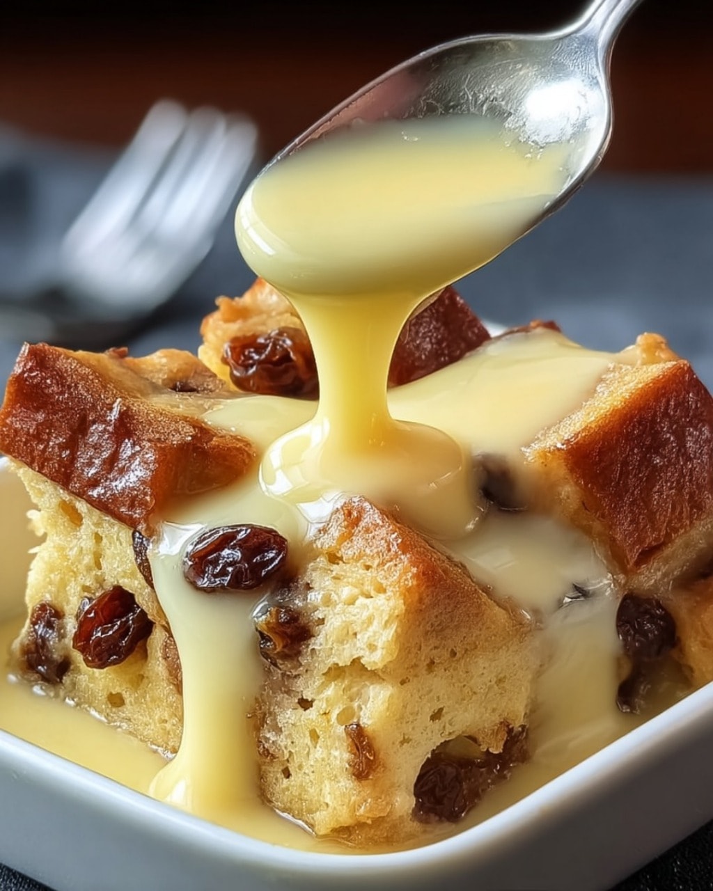 Sirve el budín tibio con un generoso baño de salsa de vainilla caliente. ¡La combinación perfecta para reconfortar cuerpo y alma!