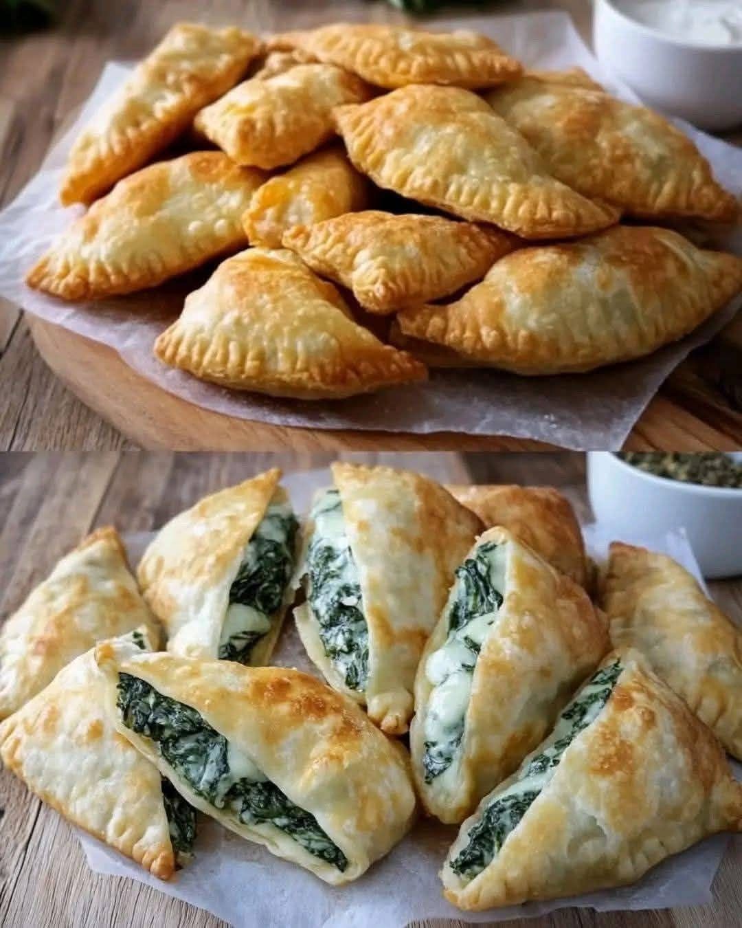 Deliciosos Pastelitos de Espinaca y Queso con Hojaldre: ¡Crujientes por fuera, cremosos por dentro! 🥐🧀🌿 Pastelitos de Espinaca y Queso…