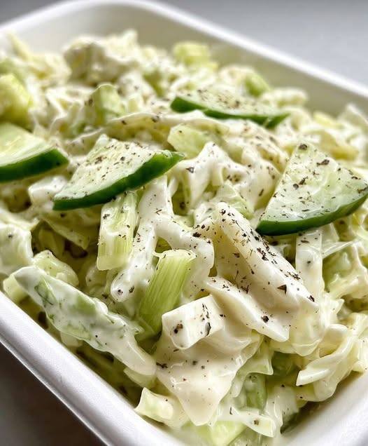 Ensalada de Repollo Cremosa y Picante con Pepinos y Apio