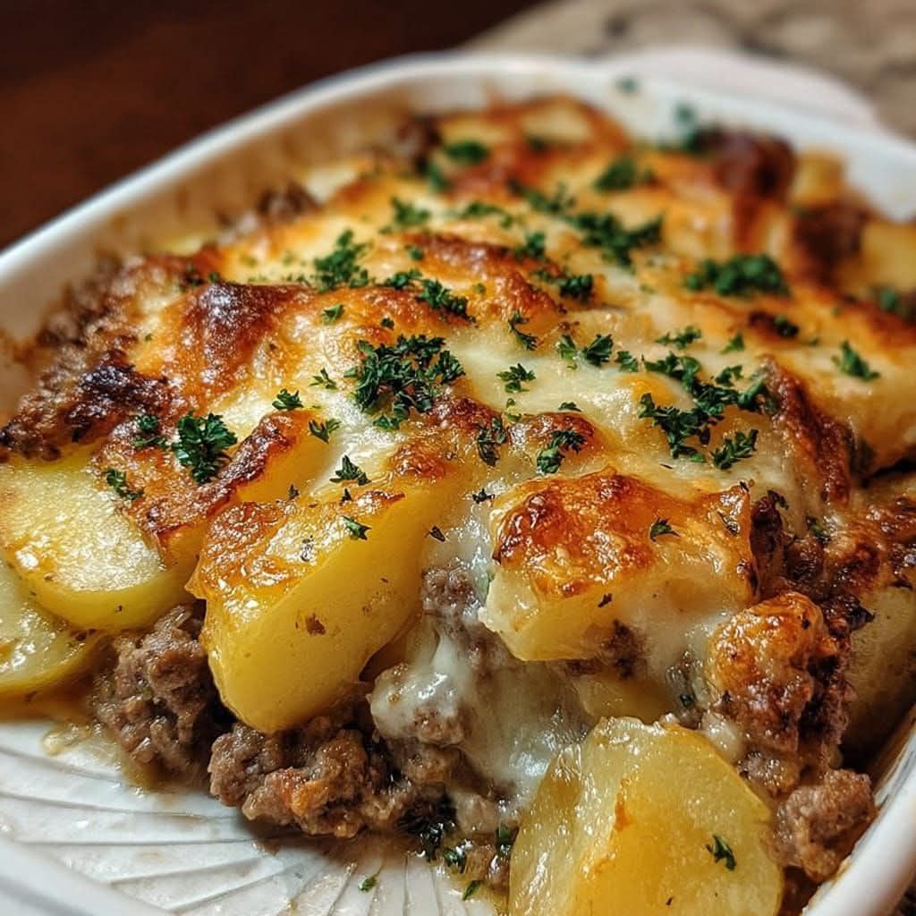 ¡Aquí tienes una receta sencilla y deliciosa de Cazuela de Carne y Papas que es sustanciosa, llena de queso y perfecta para una comida reconfortante!