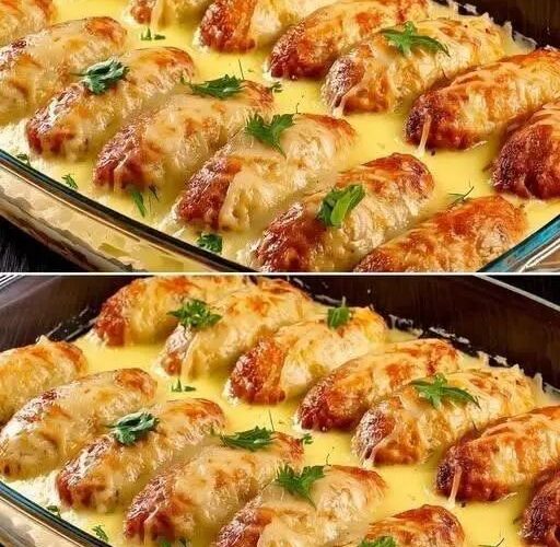 Rollitos de col rellenos sobre una cama de verduras y cubiertos con queso: ¡un clásico familiar delicioso!