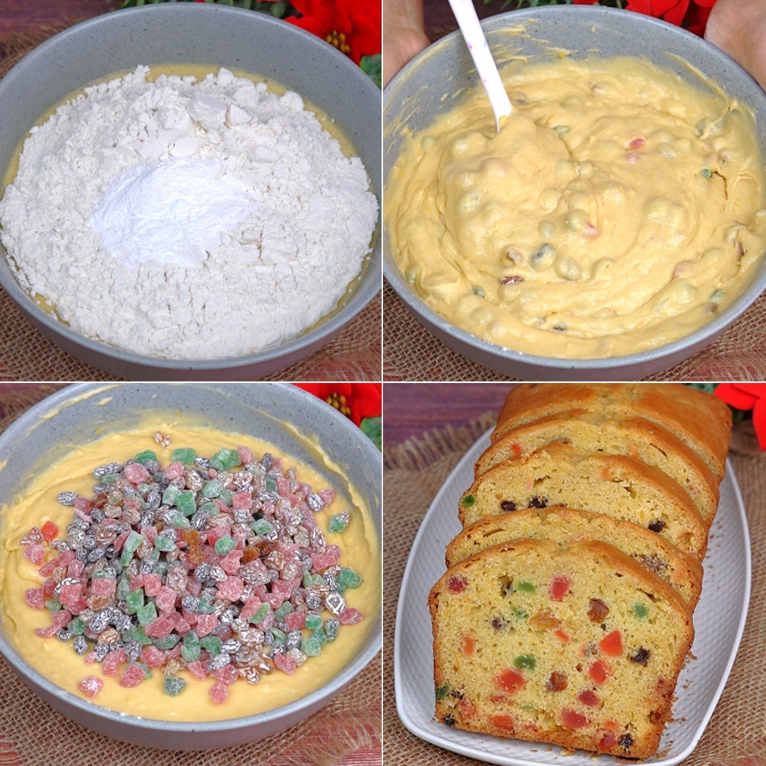 Para elaborar un delicioso bizcocho de frutas confitadas, necesitarás: