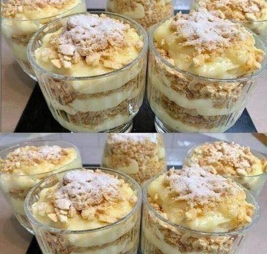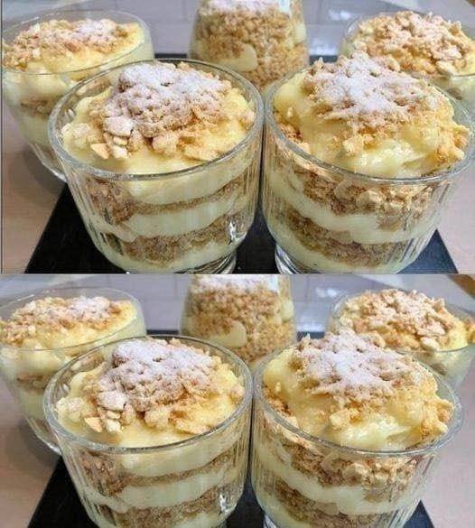¿Buscas el postre perfecto para esos días de relax? Este manjar combina capas crujientes de migas doradas con una crema pastelera sedosa, todo servido en un vaso para un placer irresistible. ¡Prepáralo en minutos y satisface tu antojo de dulce de la manera más deliciosa!