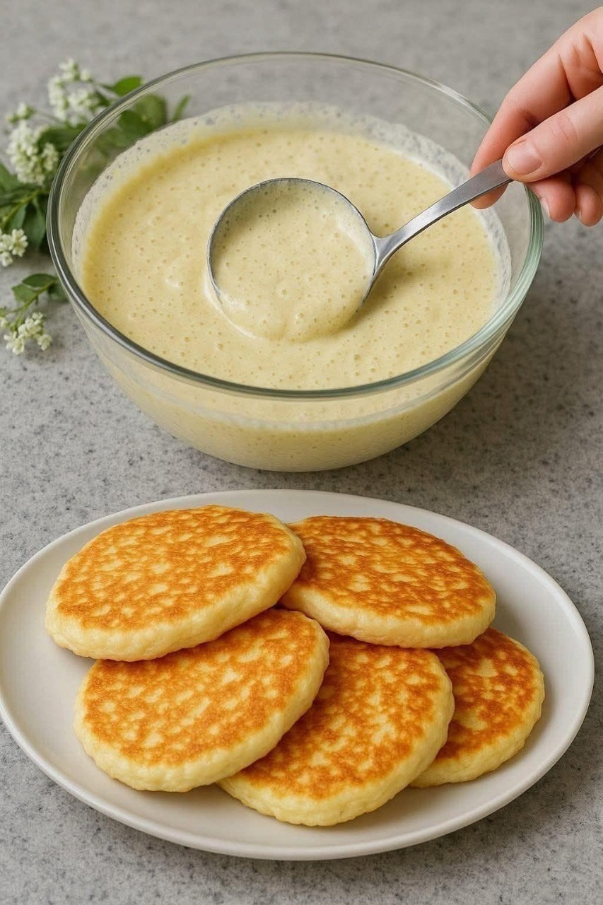 Vierte porciones de masa con una cuchara, formando pequeños círculos. Cocina cada panqueque durante 2-3 minutos por lado, hasta que estén dorados y bien cocidos por dentro.