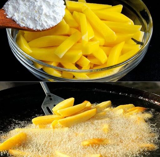 - Deixe as batatas de molho (opcional): Se tiver tempo, pode deixar as tiras de batata de molho em água fria por 30 minutos. Isso ajuda a eliminar mais amido e contribui para que as batatas fiquem mais crocantes. Depois, seque-as bem com papel toalha.