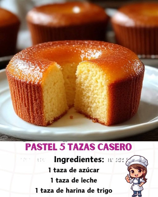 Si te encantan los postres hechos en casa, este Pastel 5 Tazas se convertirá en tu receta favorita. 🎂✨ No solo es increíblemente sencillo de preparar, sino que su textura esponjosa y su sabor tradicional te transportarán a los postres de la abuela. 👵💖 Lo mejor es su simplicidad: sin báscula ni medidas complicadas, solo 5 tazas de ingredientes que seguro ya tienes en tu cocina. 🥚🥛🍚 ¡Mezcla, hornea y disfruta!