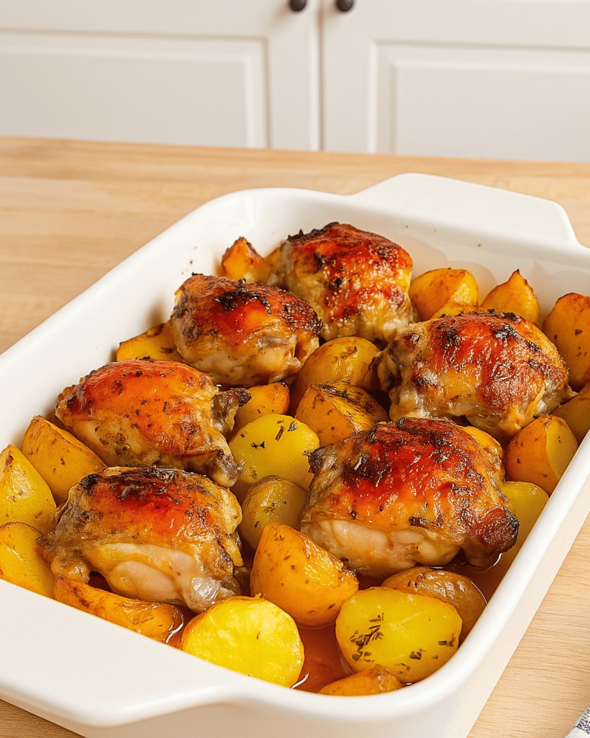 Pollo asado al horno con patatas tiernas
