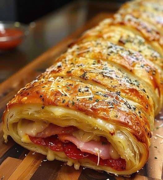 - Stromboli: Se enrolla como un brazo de gitano, con capas de masa e ingredientes.