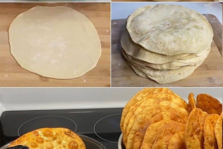 Divida a massa em porções pequenas, faça bolinhas e estique com um rolo até obter círculos finos.